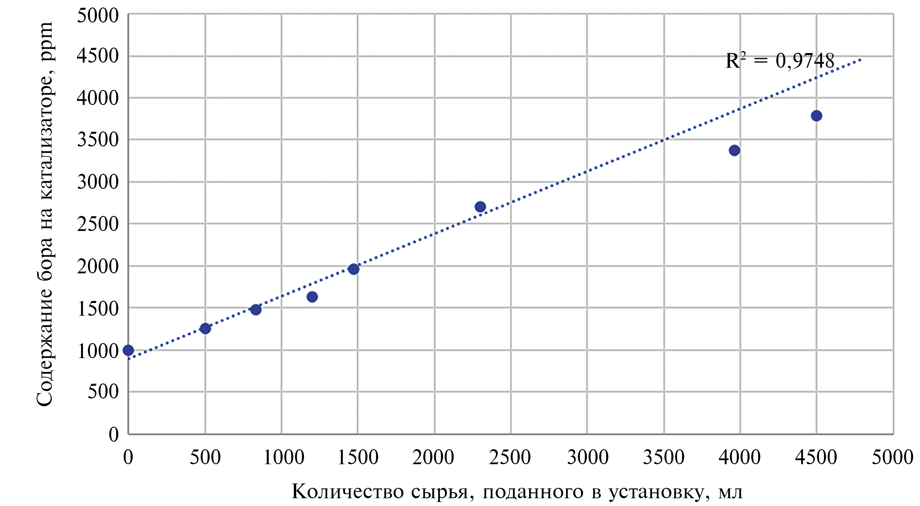 Содержание бора на катализаторе, ppm | 1020 | 1640 | 1970 | 3780 |