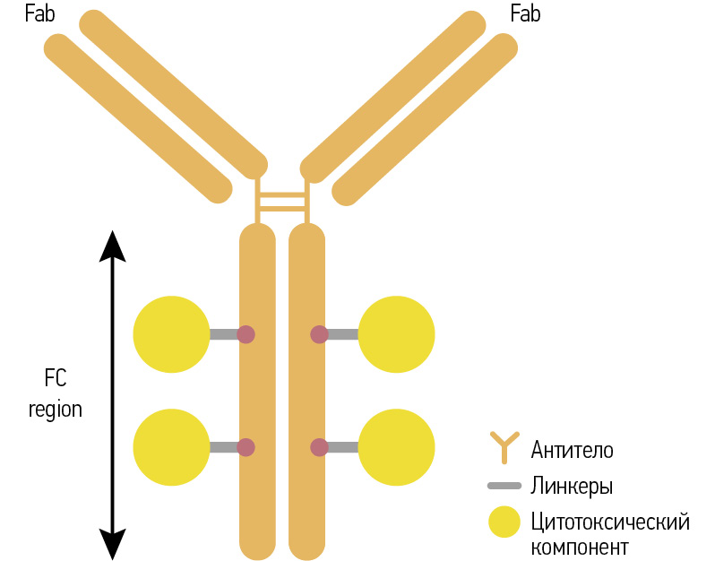 Рис. 1. Структура иммуноконъюгата. Антитело-линкер-цитотоксический компонент.