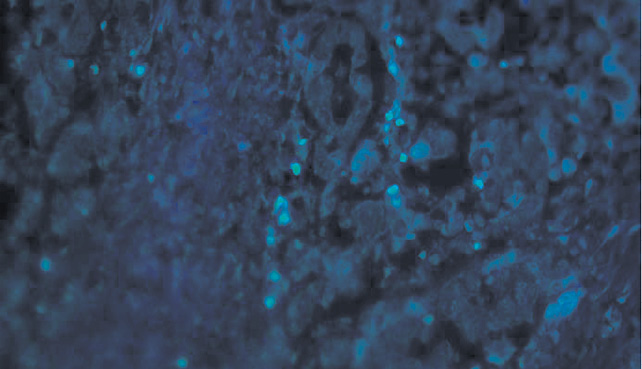Рис. 4. Экспрессия антигенов СD16+ клеточной поверхности Т-лимфоцитов в микроокружении СРЯ, ×200.