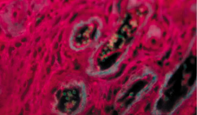 Рис. 11. Экспрессия антигенов СD11b+ клеточной поверхности макрофагов в микроокружении ЭРЯ, ×200.