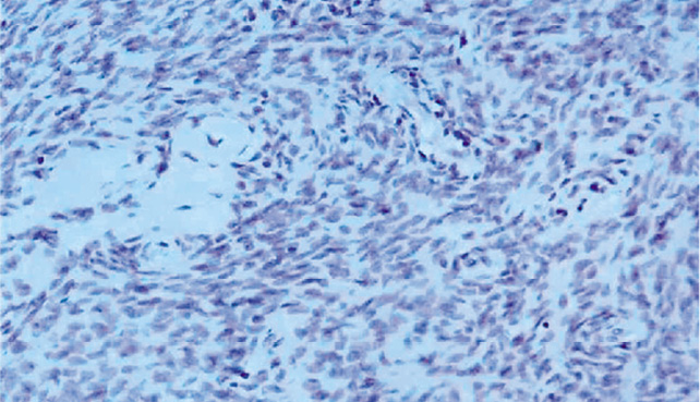 Рис. 3. Экспрессия СD3-антигенов клеточной поверхности Т-лимфоцитов в ткани доброкачественной опухоли яичников, ×200.