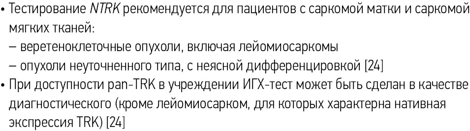 Тестирование NTRK целесообразно для определенных групп пациентов, так как поможет обеспечить врача необходимой информацией для выбора терапии для конкретного пациента.
