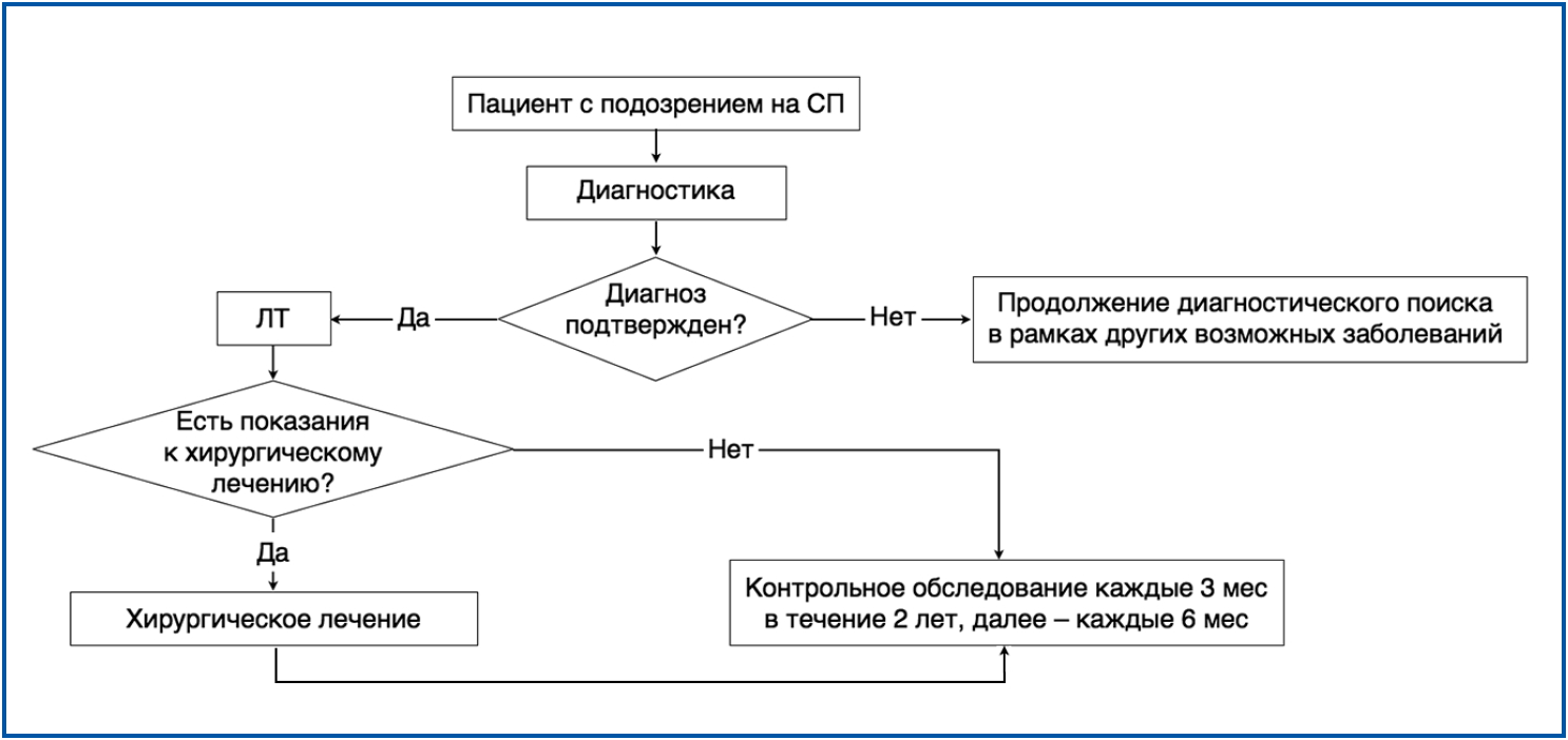 - У всех пациентов с подозрением на СП или выявленной СП при первичном или повторном приеме, контрольных обследованиях и подозрении на рецидив, прогрессирование в ММ для уточнения общего состояния пациента, определения возможности проведения лечения и/или (в случае ранее проведенной терапии) развития нежелательных явлений лечения рекомендуется выполнять следующие клинические исследования [7, 8, 10]: