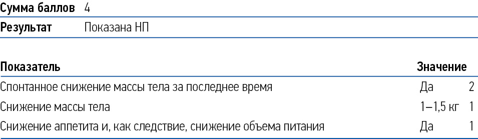 Важным является раннее выявление признаков тяжелой НН (табл. 1). При наличии любого из перечисленных критериев плановое хирургическое лечение следует отложить и провести курс предоперационной НП длительностью 7–14 дней.