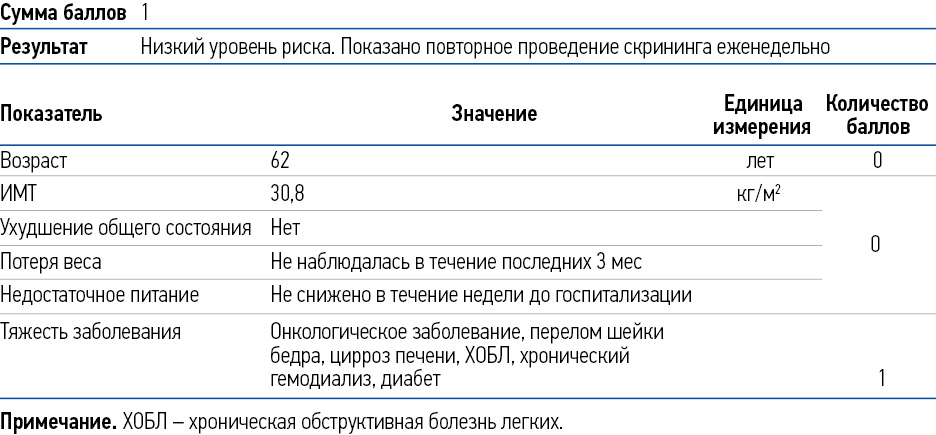 Рис. 2. Пример заполнения шкалы NRS-2002 в ГИС «Асклепиус».