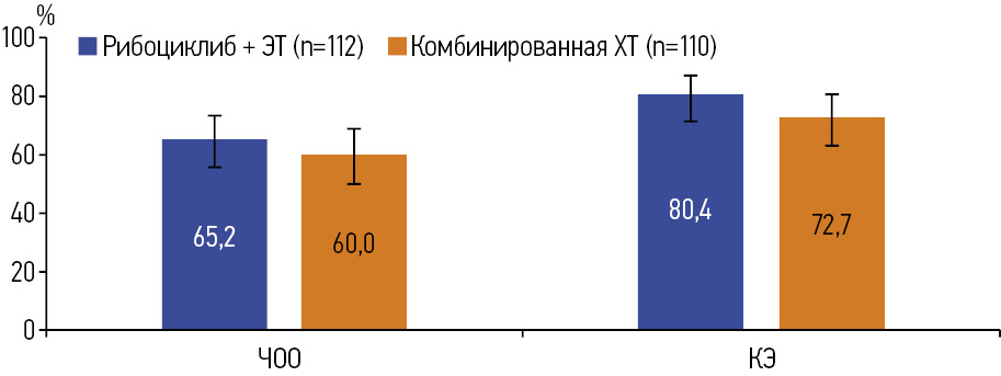 Рис. 3. Уровень ЧОО и КЭ в РКИ II фазы RIGHT Choice [1].