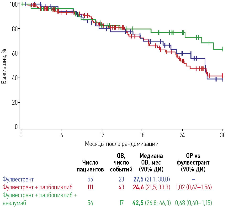 - комбинированной терапии палбоциклиб + фулвестрант + авелумаб.