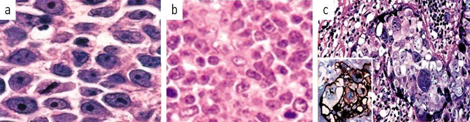 Fig. 2. Morphological variants of DLBCL: a – centroblastic; b – immunoblastic; c – anaplastic.