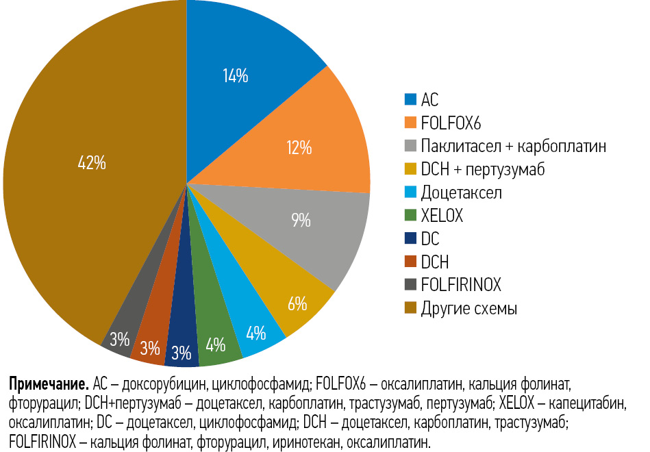 Materials and methods. The paper presents the results of the FLAME study, the first Russian observational study in patients with solid tumors who received only cytotoxic CT or a combination with targeted, immuno-oncological drugs. By random sampling, the study retrospectively included 500 patients with a median age of 59 years (18–83 years) from 25 medical institutions in the Russian Federation.