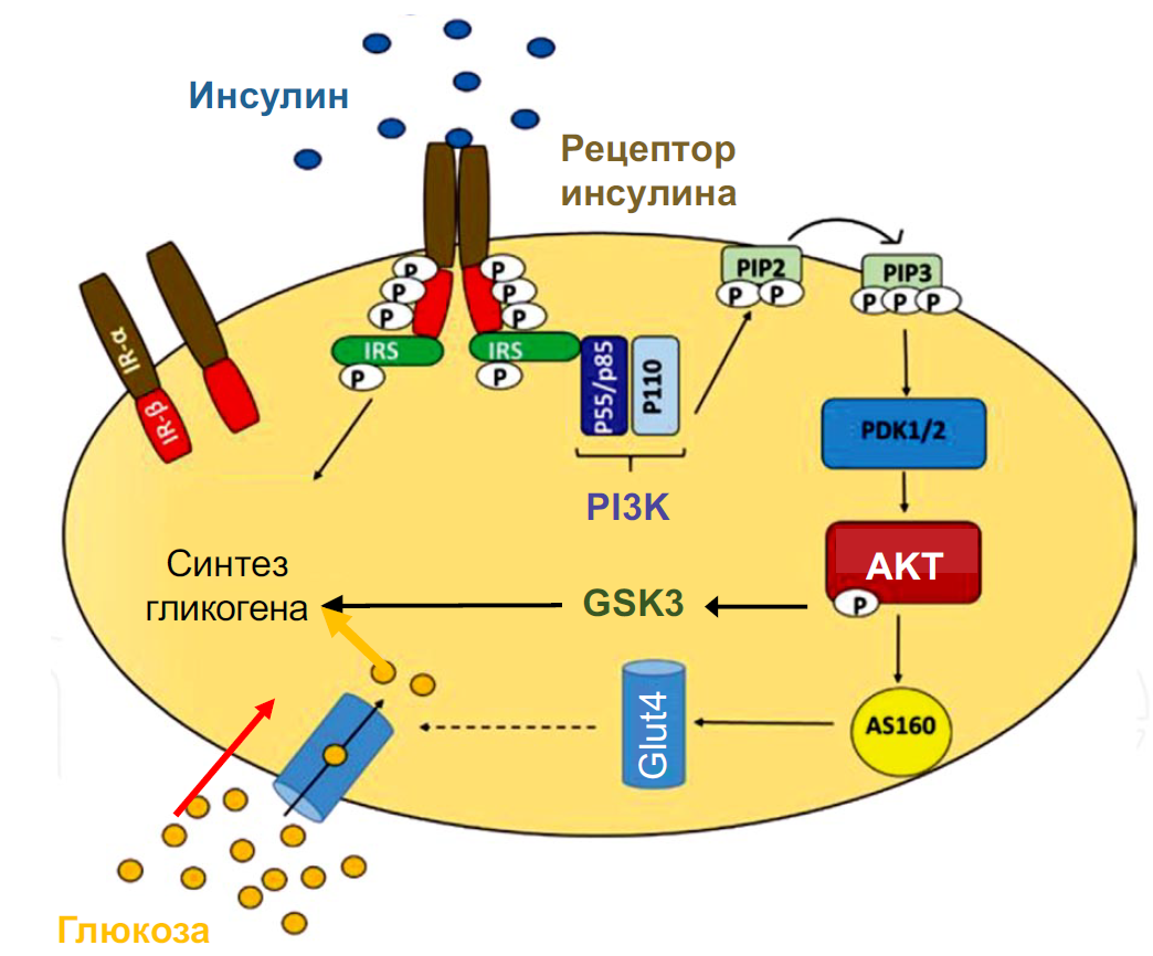 Рис. 8. Роль PI3K в регуляции уровня глюкозы [38].