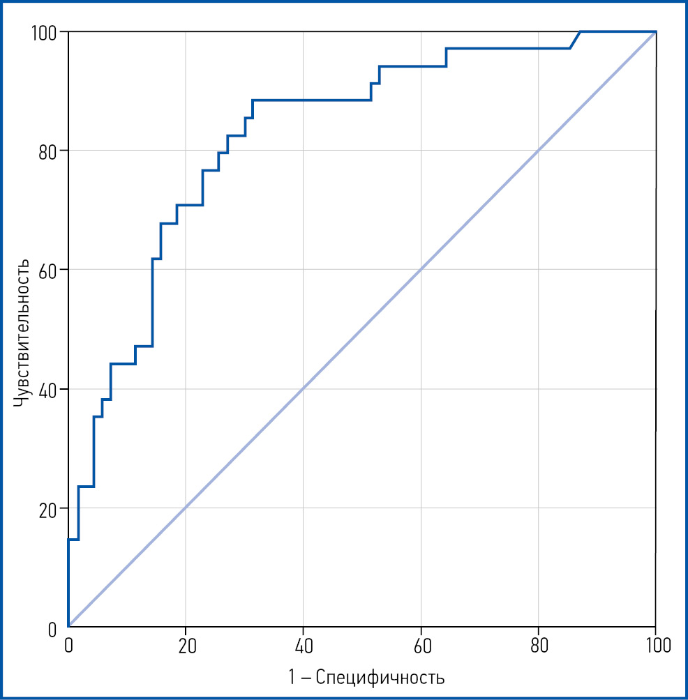 Рис. 3. ROC-кривая, характеризующая зависимость прогноза комбинированной конечной точки от значения логистической функции p.