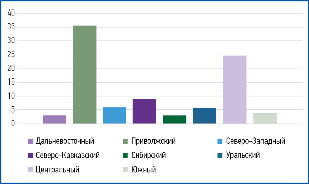 Всего в исследовании приняли участие 366 врачей-онкологов из 8 федеральных округов (ФО) РФ (рис. 1), 93% опрошенных являются сотрудниками государственной лечебной организации.
