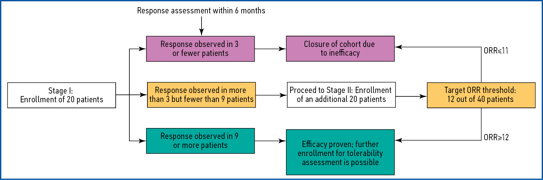 The objective response rate is defined as the proportion of patients with either a complete or partial objective response to treatment, according to RECIST 1.1 criteria for the assessment of solid tumor response. If a patient experiences at least one PR or CR during the study treatment period, that patient will be considered a responder. The analysis includes all assessments made during the first 6 months of therapy. If patients had their first response assessments within 6–9 months from the start of therapy, they could also be recorded for statistical analysis. Once the planned objective response rate is reached, enrollment in the study continues to evaluate the safety profile of the treatment.