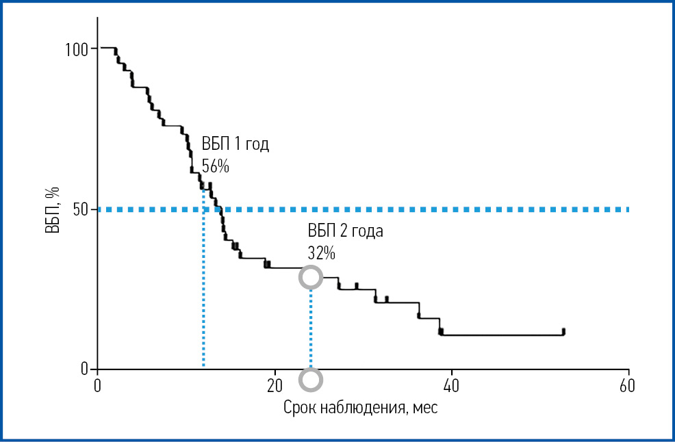 Рис. 1. Кривая ВБП среди пациентов в исследовании в течение всего срока наблюдения.