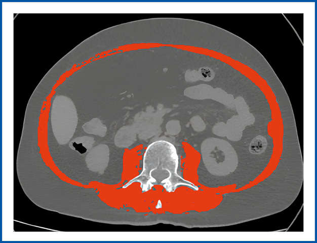 Рис. 1. Измерение площади скелетной мускулатуры с помощью КТ.