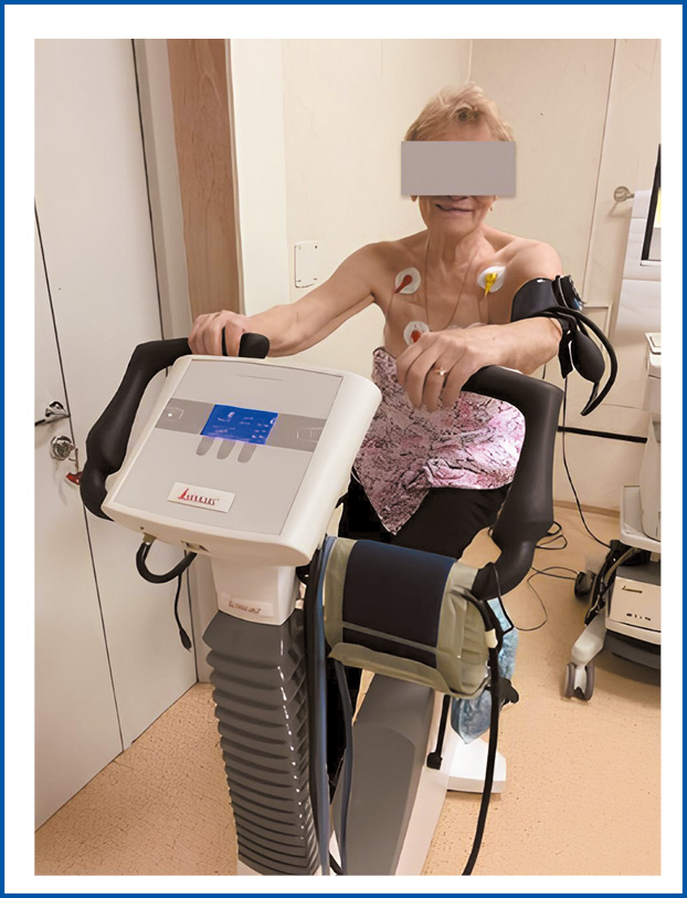 Рис. 2. Нагрузочное кардиопульмональное тестирование с использованием велоэргометра.