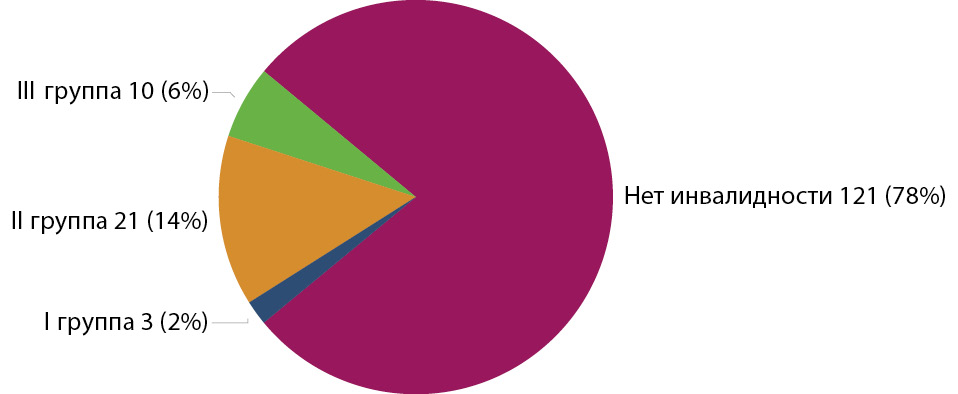 Рис. 7. Распределение пациентов с ТКЛК (n=155) в зависимости от наличия инвалидности.