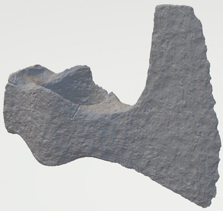 В качестве предмета исследования была выбрана реплика средневекового топорища. Оригинальное топорище было найдено на территории Самарской области и отсканировано. 3D-модель скана топорища представлена на рис. 1.