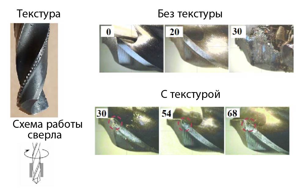 Цель работы. В настоящей работе для снижения трения скольжения используется сверлильный инструмент с микротекстурами на стороне канавки и кромки, полученными с применением лазерной обработки.