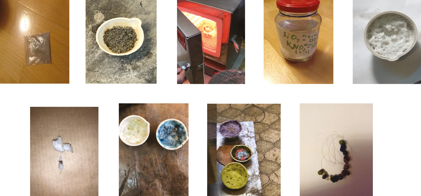Результаты. Результатом эксперимента стало подтверждение рецептов по изготовлению стекла из раннесредневековых источников. Этапы эксперимента приведены на рисунке 1.